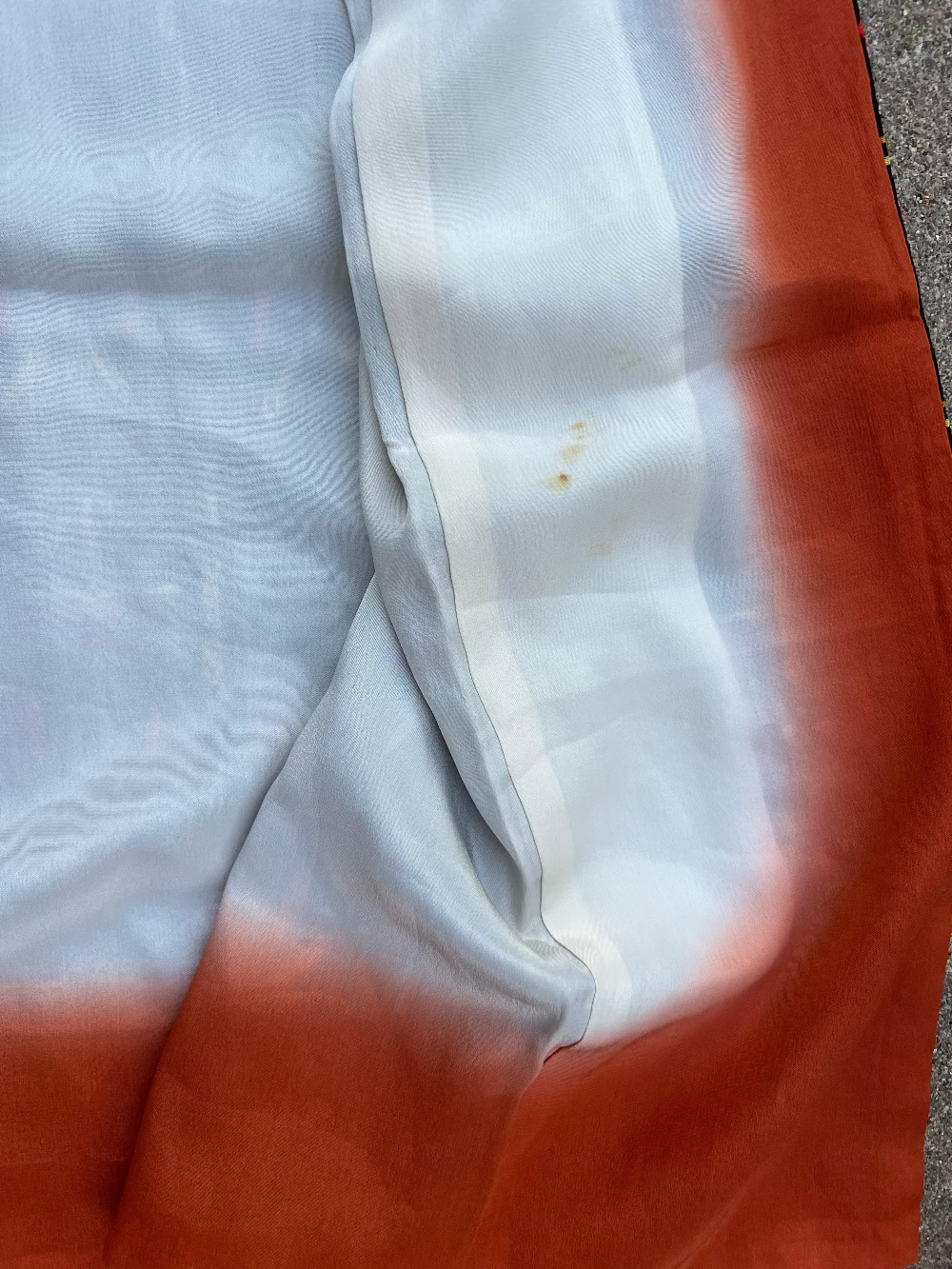 Inside a pop of ombre orange/coral fading into the white satin lining.