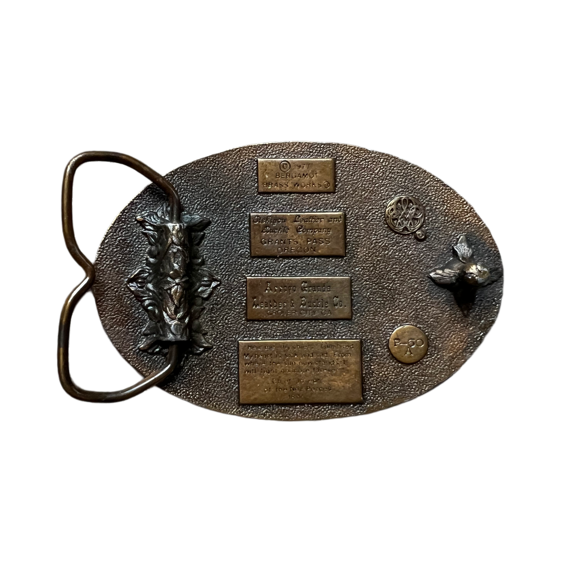 1977 Chief Joseph Brass Belt Buckle by Bergamot Brass Works