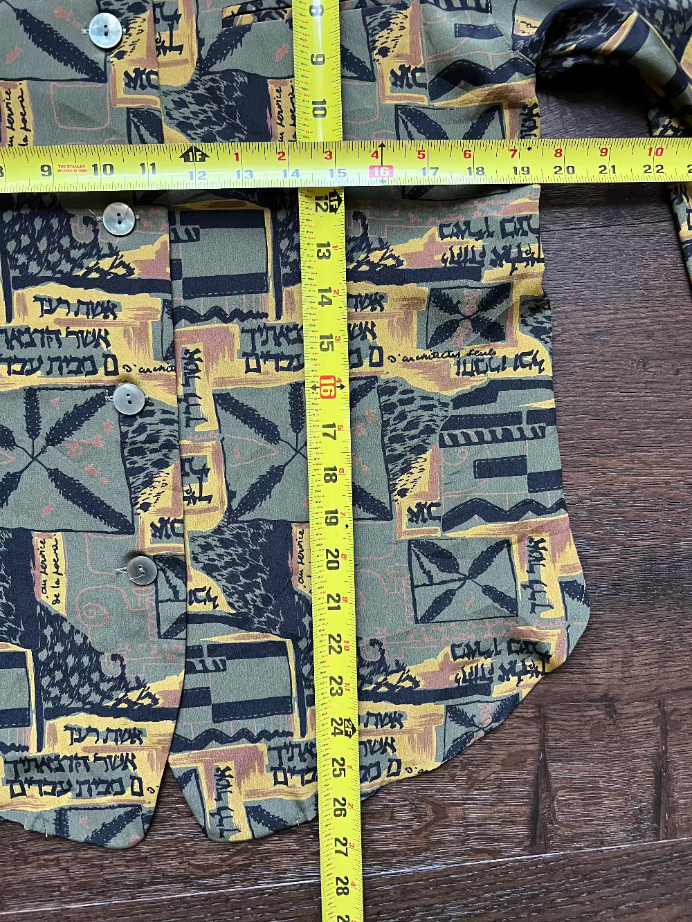 80s/90s earth tone patterned long sleeve button up w/shoulder pads. STATEMENT.