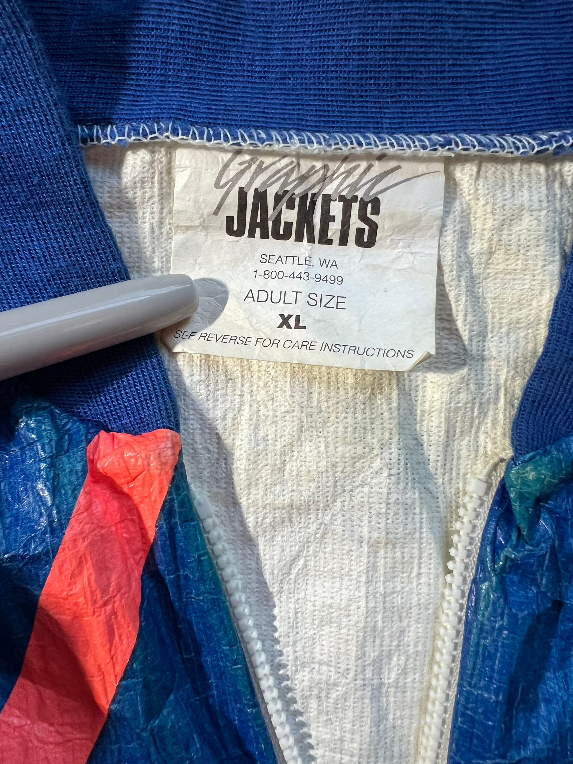 Blue neon (paper thin) material nostalgic windbreaker for the jump roping champion!