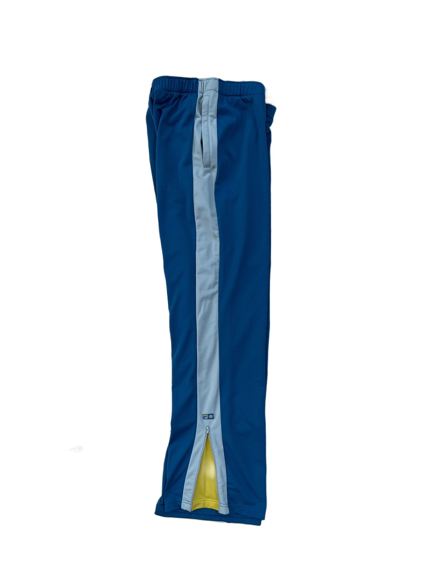 Y2K FILAS tracksuit-- Full Zip top with zipper buttons & elastic waistband with zipper bottoms on pants. Love the FILA logo on the zipper pulls, as well as the yellow at the bottom of the unzipped pant legs!