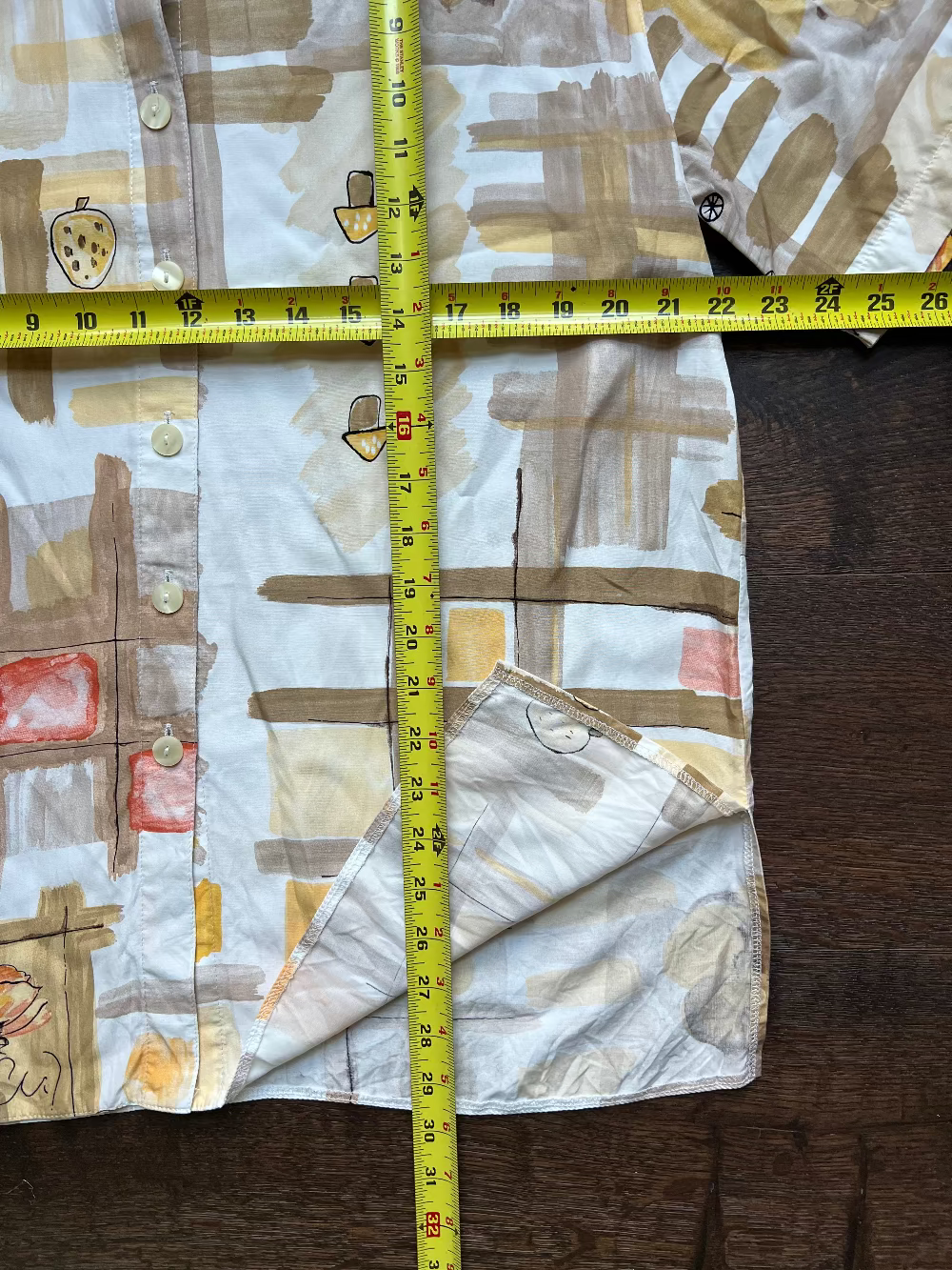 Unbranded 90s cream/yellow/brown fruit/floral/mushroom patterned button up. SUPER CUTE. Picnic/Beach vibes. Great color, lightweight. #gardenparty